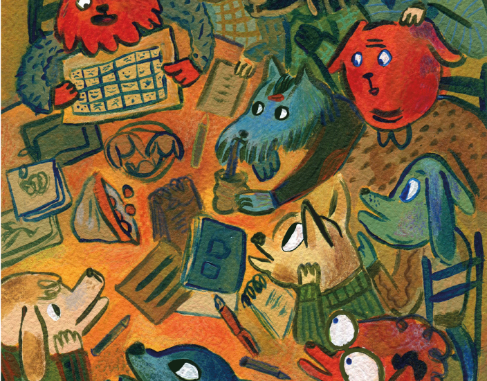 Siblings, rain and a dog